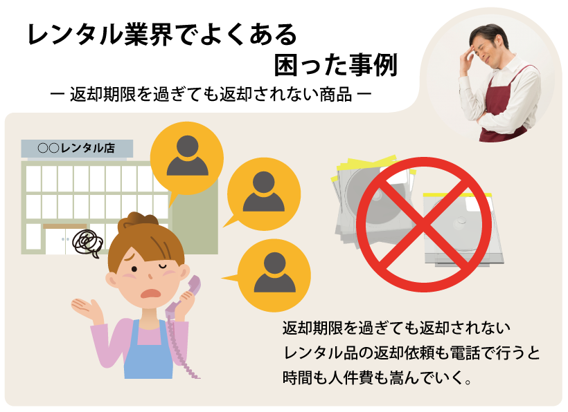 返却期限を過ぎているお客様への返却依頼を全て電話で行うと、時間もコストも嵩んでしまう。